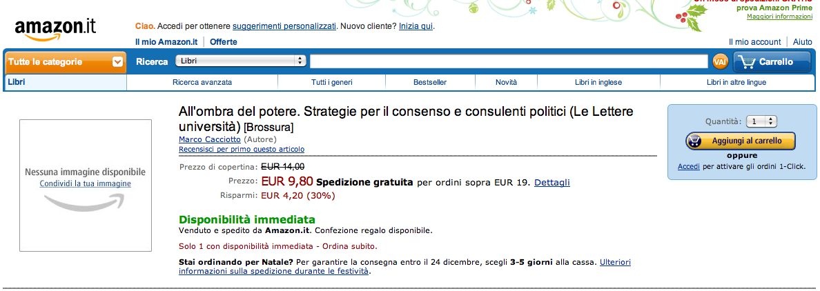 Venghino, signori, venghino. Il mio libro scontatissimo su Amazon.it