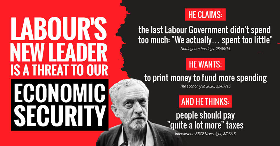I Conservatori britannici danno il benvenuto a Corbyn nuovo leader del Labour con due manifesti che lo indicano come minaccia economica e alla sicurezza nazionale
